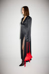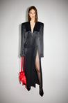 Straight maxi dress with shoulder pads and side cut .